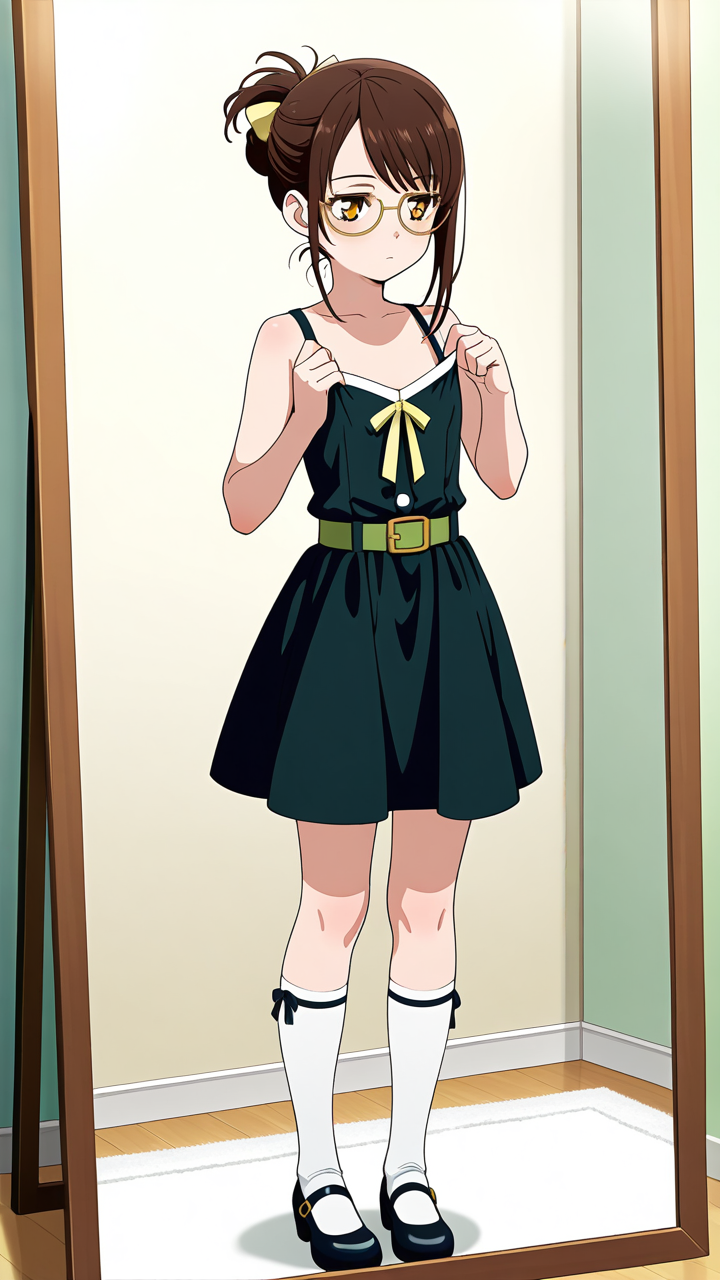 【エロ画像】AI_おしっこ_深緑ロングに黒サングラス、セーラー服の謎
