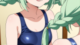 【エロ画像】AI_おしっこ_ピンク髪で弾ける、スクール水着の筋肉美少