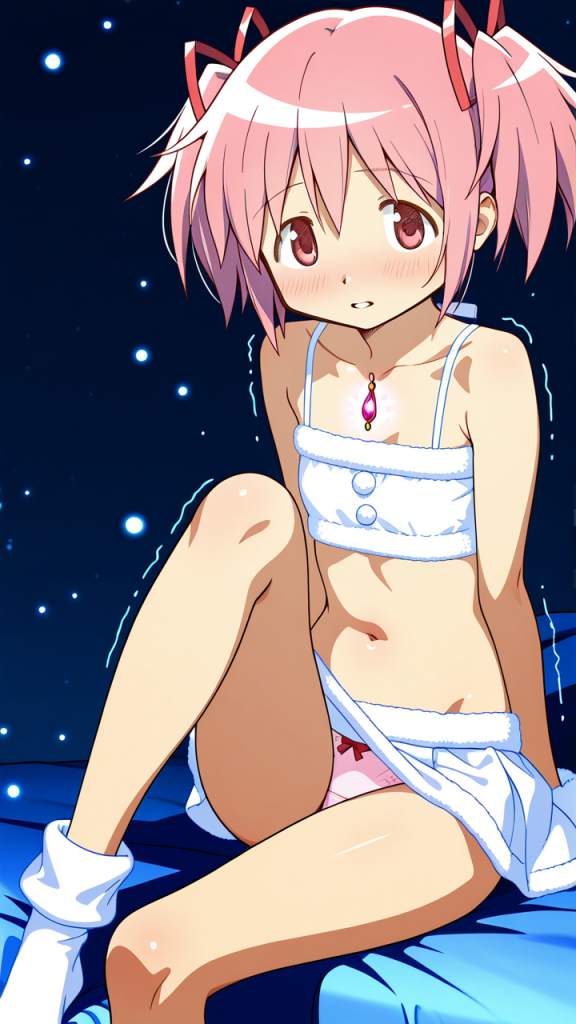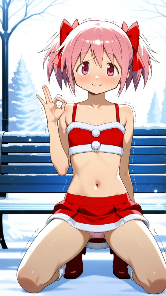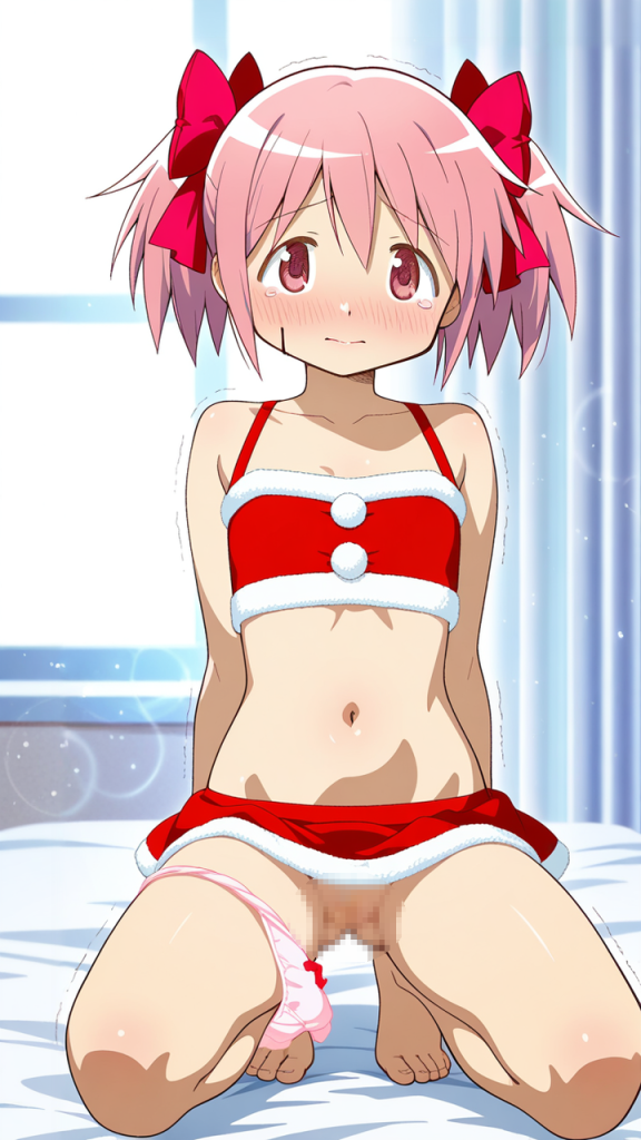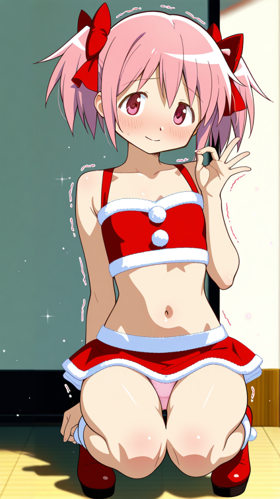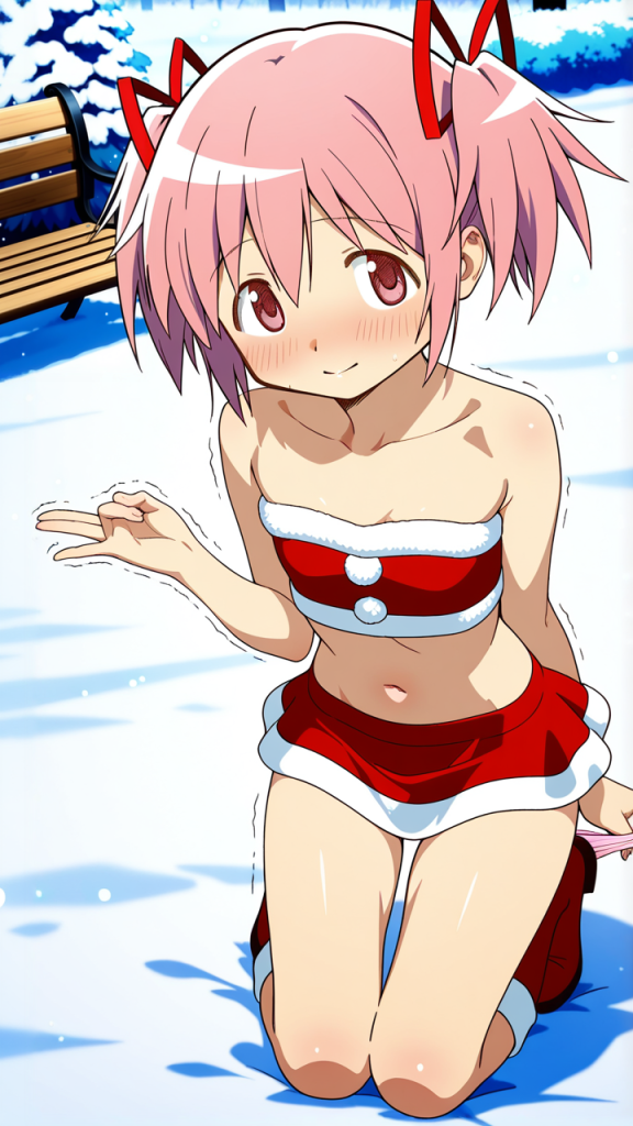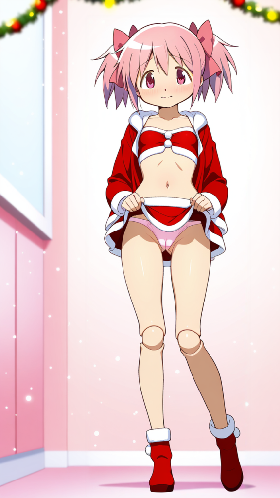 魔法少女まどか☆マギカ, 鹿目まどか, サンタコスプレ, サンタ衣装, クリスマス, アニメ, ソロ, 女の子, ピンク髪, ツインテール, 赤い衣装, 公式作画風,