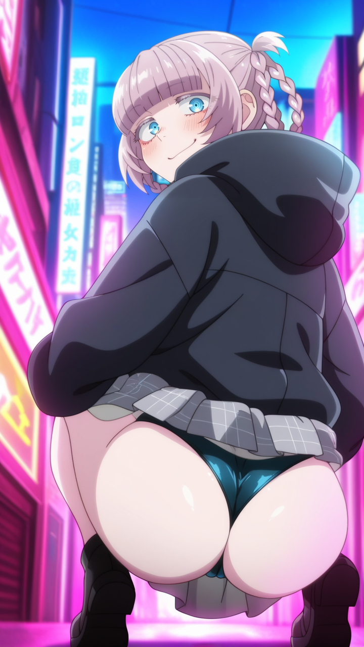 Yofukashi no Uta, Nazuna Nanakusa, ass, backshot, rear view, embarrassed, blush, anime, girl, solo, vampire, silver hair, long hair, sexy, erotic, fetish, exposed