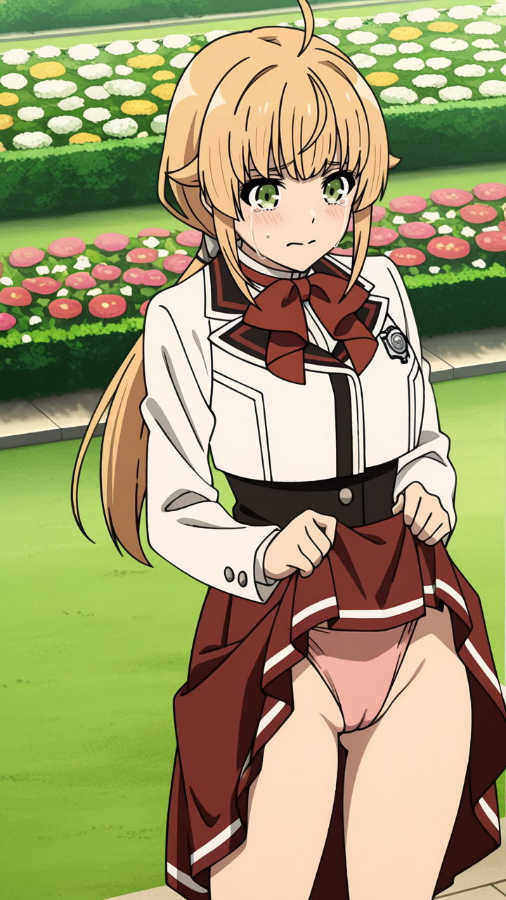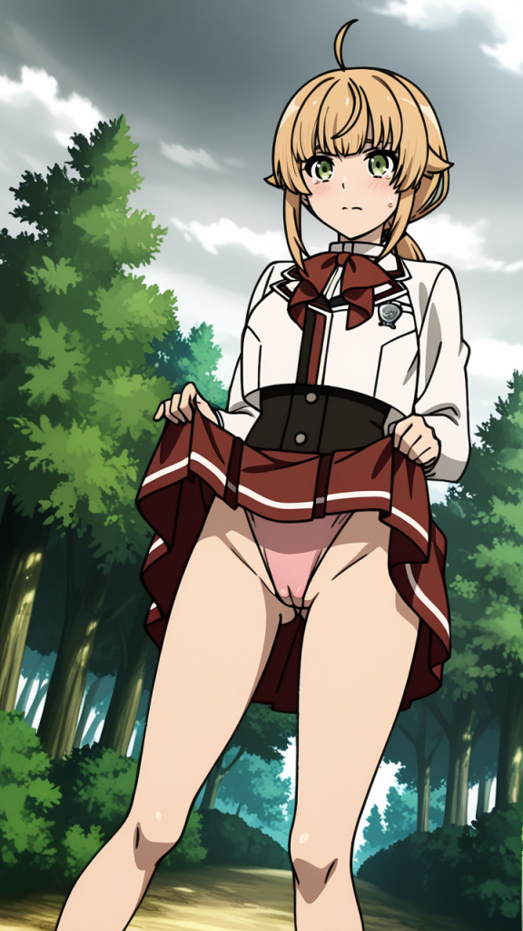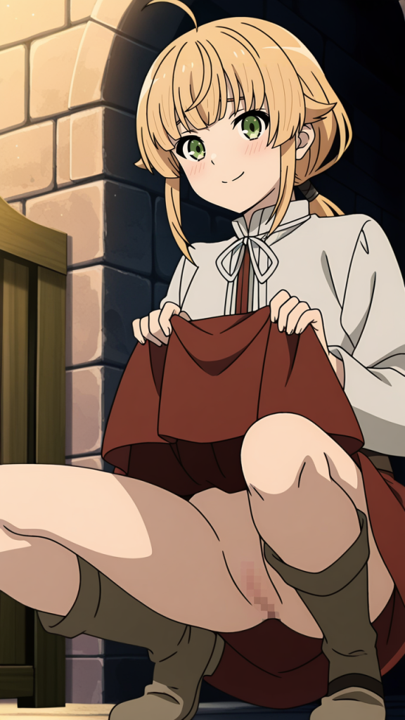 無職転生, ノルン・グレイラット, アニメ, 美少女, ソロ, 茶髪, セミロング, 制服, 恥じらい, ピンクほっぺ, 清楚系