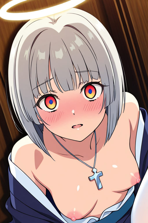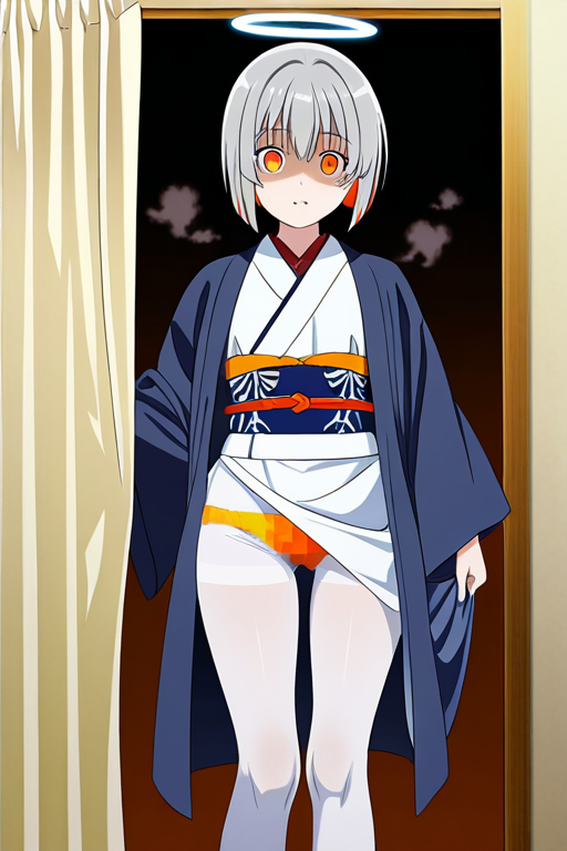 美少女,おっぱい,おしり,M字開脚,食い込み,乳首,パンツ,くぱぁ,,グレーのショートカット、毛先がやや遊んでいる,琥珀色の細めでクールな瞳,普通体型でやや柔らかい印象,紺色の半纏と白い着物の和洋折衷、胸元に天使の輪モチーフのペンダント、白いタイツ,ヤンデレ気味で執着心が強く、好きな者には過度に献身的