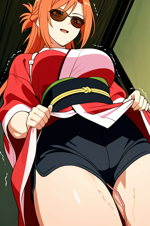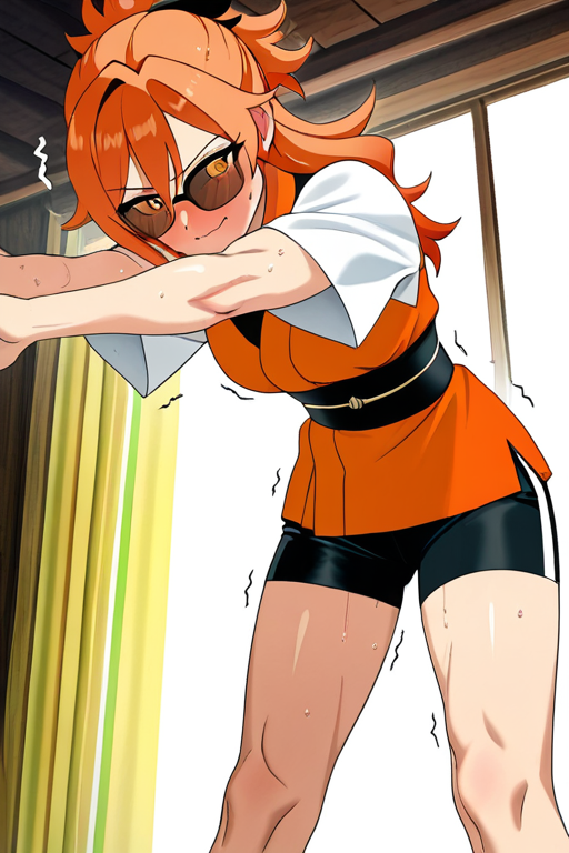 美少女,おっぱい,おしり,M字開脚,食い込み,乳首,パンツ,くぱぁ,バイブ,オナニー,,オレンジ髪のハーフアップ,深紅の瞳、丸くてキラキラした目,スポーティー・筋肉質,クリーム色の半袖着物に黒い帯、洋風の黒いショートパンツ、ブラウンのサングラス,おっとり癒し系、いつも穏やかに微笑んでいる