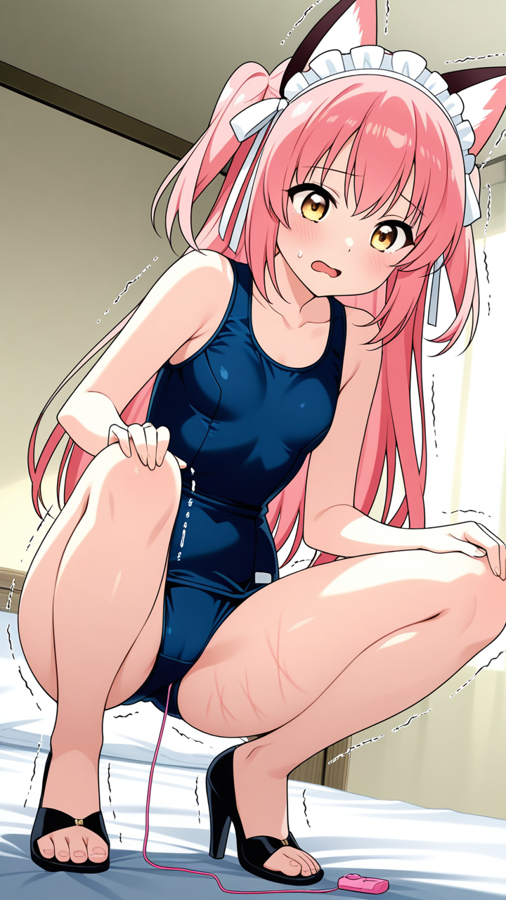美少女,おっぱい,おしり,M字開脚,食い込み,乳首,パンツ,くぱぁ,バイブ,オナニー,,ピンク髪のロングストレート,金色の瞳、大きなぱっちり目,貧乳・長身,スクール水着、狐耳カチューシャ、白いリボン,お嬢様気質で気高く、優雅な立ち振る舞い