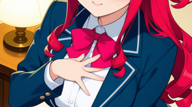 オリキャラ 【エロ画像】赤髪ツインテール巨乳メイド×美少女エロ_AI_アニメエロ画像