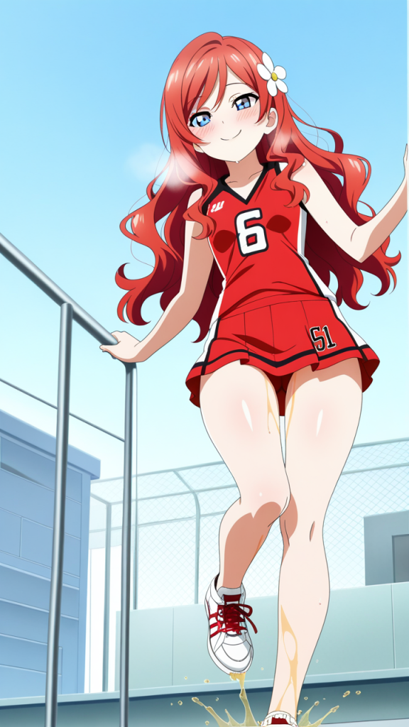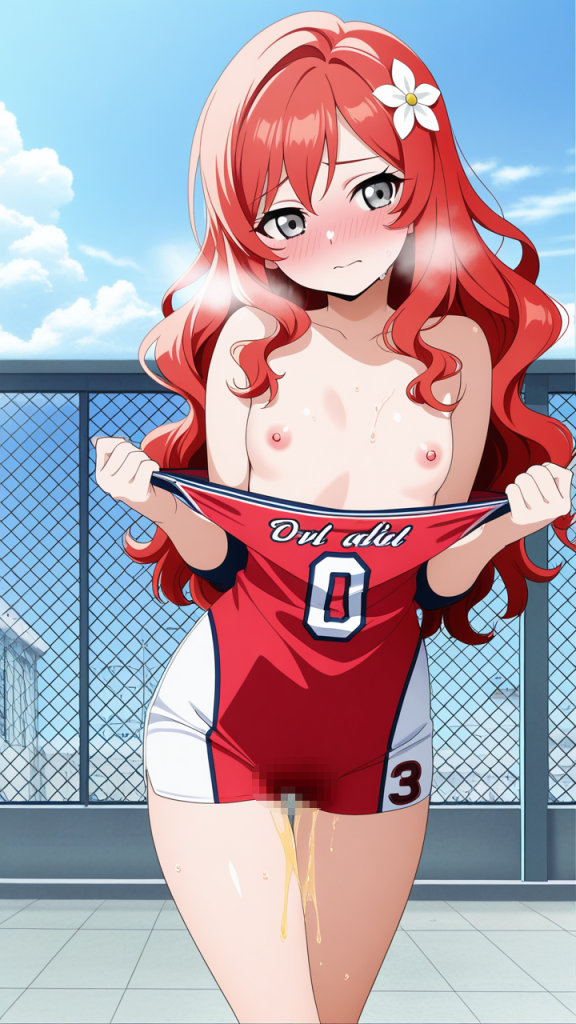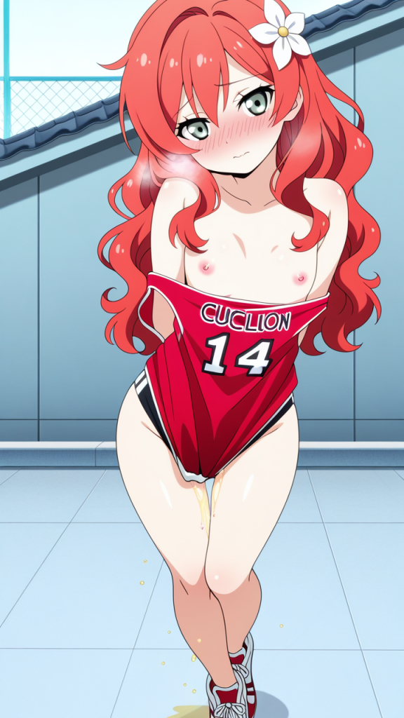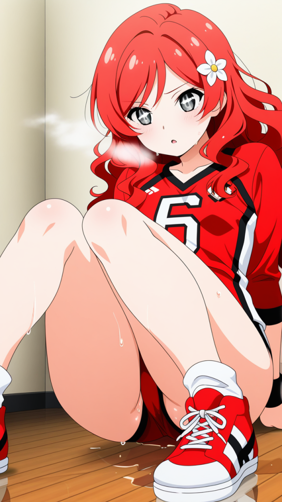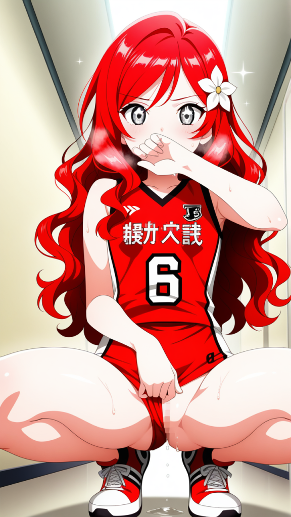 美少女,おっぱい,おしり,M字開脚,食い込み,乳首,パンツ,くぱぁ,おしっこ,お漏らし,放尿,,赤髪のウェーブロング,銀色の瞳、細めのクールな目,小柄でむっちり,深紅と黒のスポーツジャージ、白いハイカットスニーカー、髪に白い花飾り,腹黒系、冷徹で計算高い