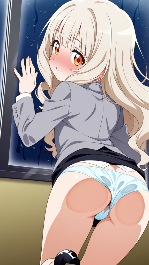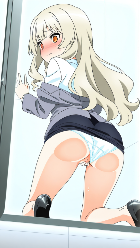 ガラスにお尻を押し付ける二次元美少女のAIエロ画像まとめ。ガラス越しに広がるぷりぷりヒップが堪らない。全部見せます!