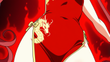 short blonde hair with slightly flared ends,deep crimson eyes, droopy eyes,slender, tall model-like figure,white and gold nun habit with ornate golden cross on chest, white rosary beads at waist, glowing halo above head, black loafers,mysterious, enigmatic aura with an air of melancholy and hidden knowledge, ethereal presence
