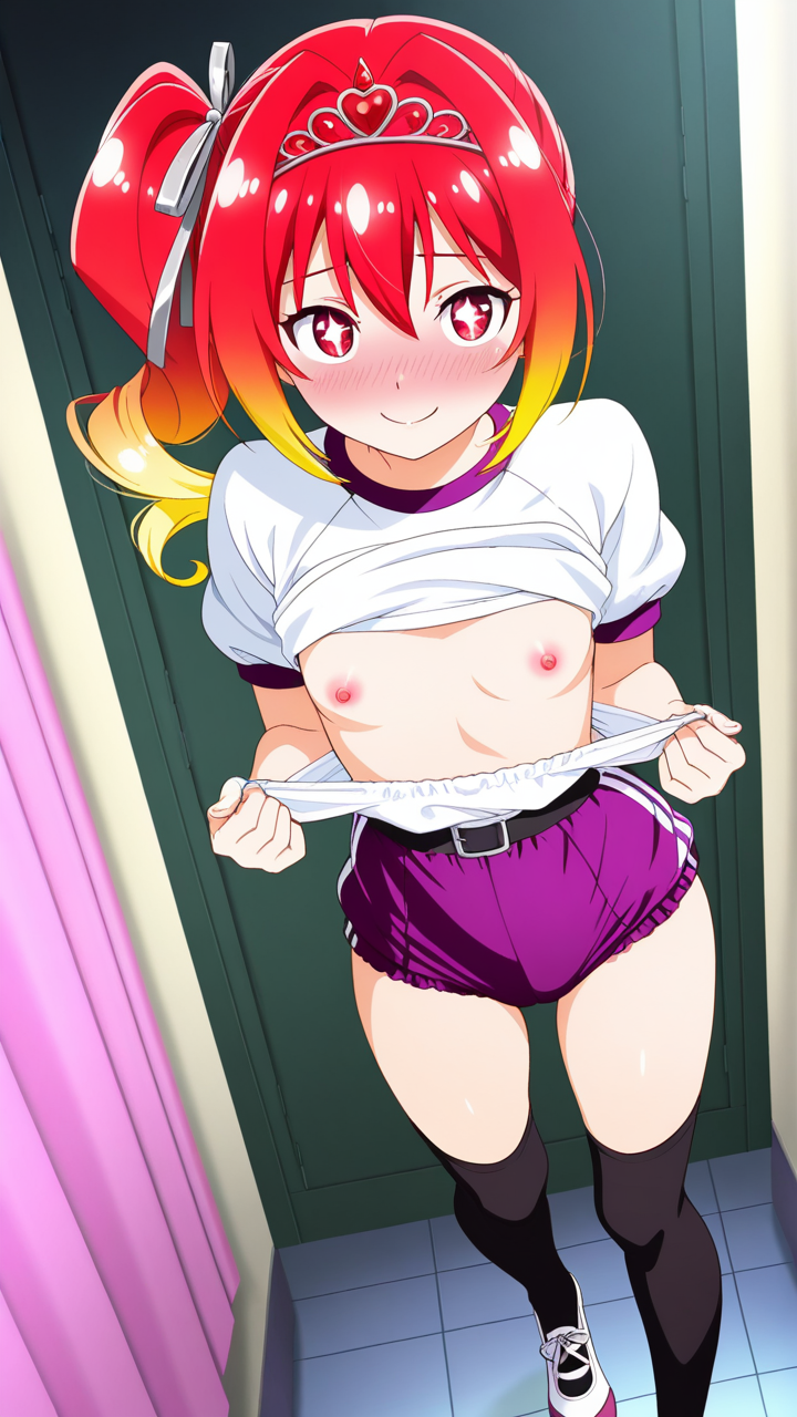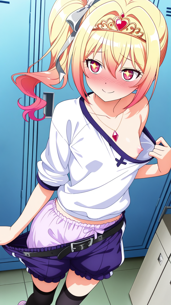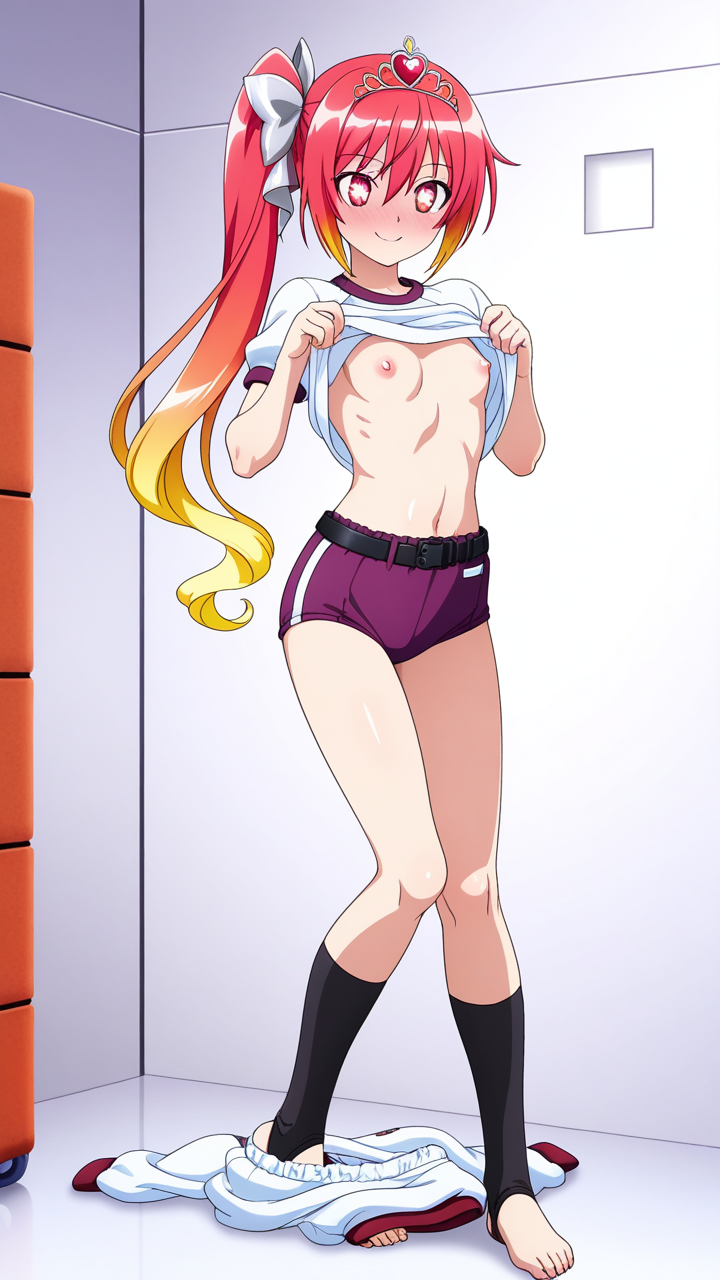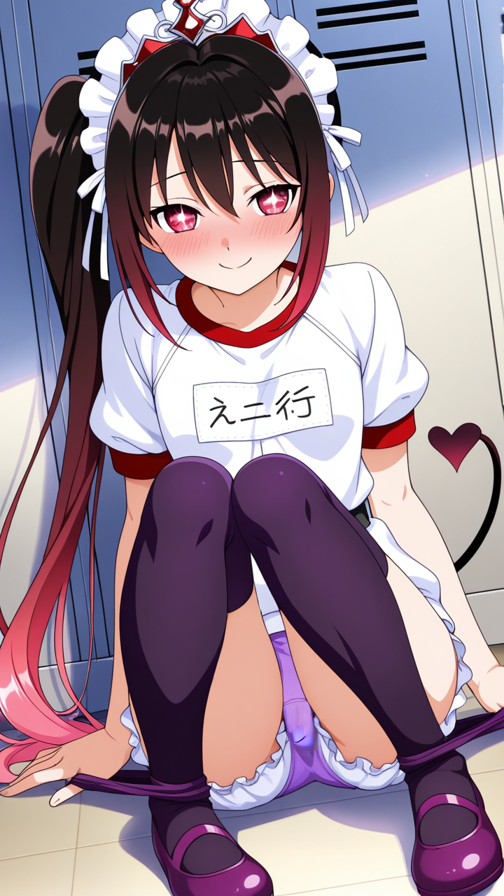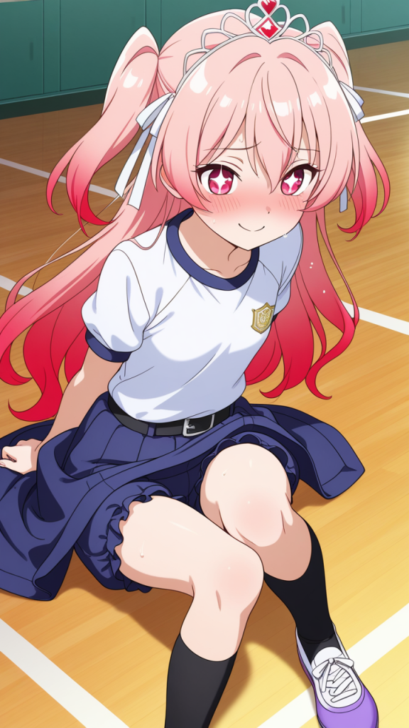 ピンク髪サイドテール細身 体操服・ブルマ_アニメエロ画像 AI エロ画像 オリキャラ