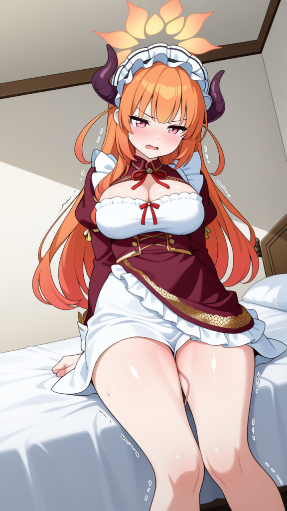 美少女,おっぱい,おしり,M字開脚,食い込み,乳首,パンツ,くぱぁ,バイブ,オナニー,,オレンジ髪のセミロング、毛先ふんわりカール,ピンクの瞳、ハーフっぽい二重,巨乳・むっちりとした体型,黒と赤のドラゴンメイド服、胸元に金色のドラゴン刺繍、腰に赤いリボン、天使の輪,ツンデレ、素直になれない可愛らしい性格