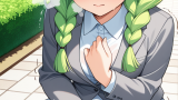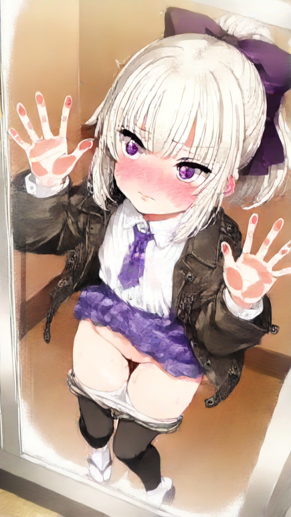美少女,おしり,ガラス,押し付け,圧迫,ヒップ,くぱぁ,パンツ,,プラチナ色のポニーテール,紫色の丸くてキラキラした瞳,貧乳で長身,白地の半袖和風上衣に黒い洋風ジャケットを羽織った和洋折衷服、黒いニーソックス、大きな紫色のリボンタイ、足元に白い足袋,ツンデレ、高飛車だが本当は優しい
