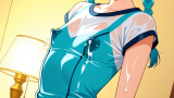 【エロ画像】白髪ハーフアップ長身貧乳×鏡越し_AI_アニメエロ画像