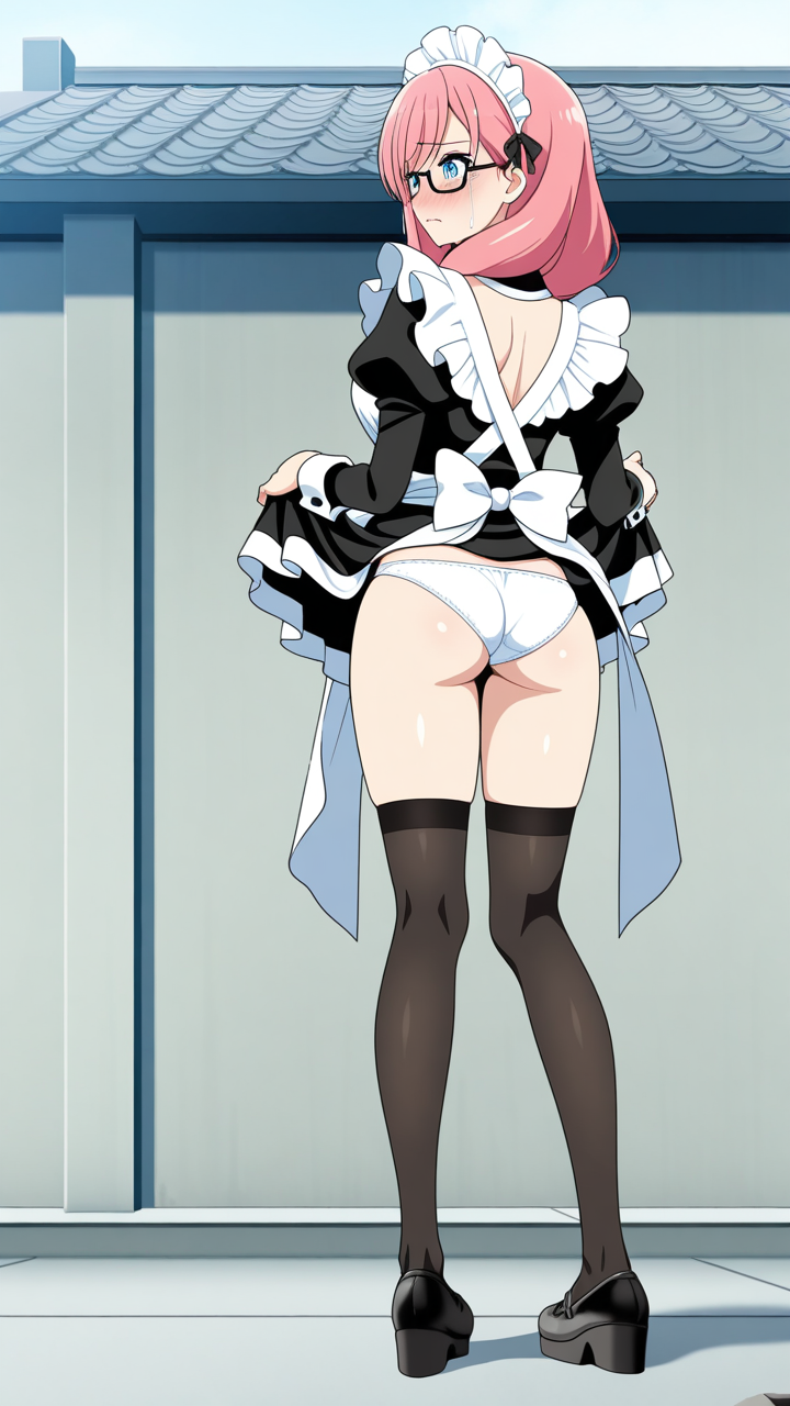 美少女,おっぱい,おしり,M字開脚,食い込み,乳首,パンツ,くぱぁ,バック,後背位,,桜色のアップスタイル、毛先にふんわりとした柔らかさ,水色の瞳、垂れ目気味のハーフ目,背が高くスレンダー,黒と白を基調としたクラシックメイド服、白いエプロン、眼鏡、黒いニーハイソックス、黒いマリアシューズ,クール、無口、静寂の中に優雅さを秘めている