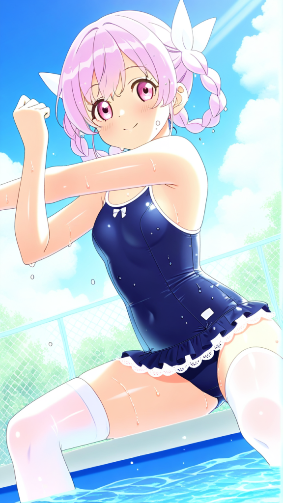 スクール水着の二次元美少女のAIエロ画像まとめ。水に濡れた紺色スク水がエロすぎる。毎日更新中!