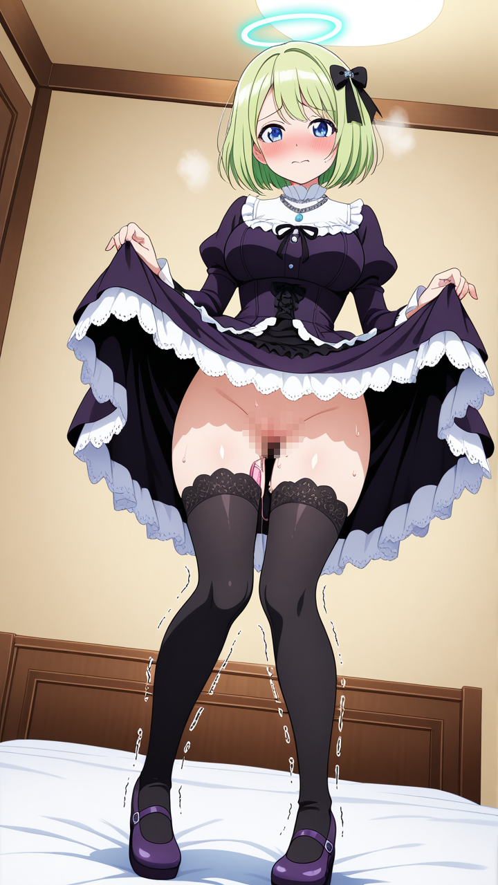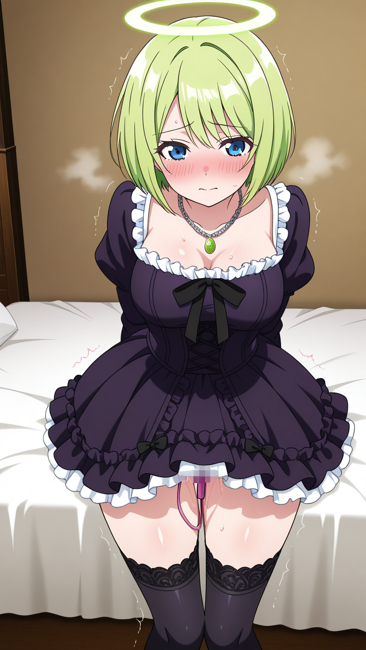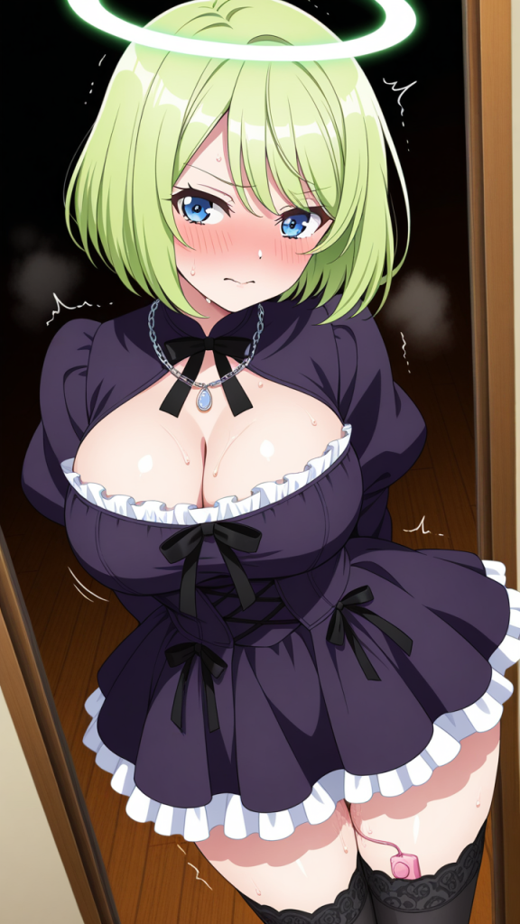 美少女,おっぱい,おしり,M字開脚,食い込み,乳首,パンツ,くぱぁ,バイブ,オナニー,,ライム色のショートカット、毛先に軽くウェーブ,青い瞳、細めのクールな目,グラマラス,黒と深紫のゴシックロリータドレス、胸元に白いレースフリル、スカートに黒いリボン装飾、黒いニーハイソックス、紫色のマリアンヌシューズ、天使の輪、首元に銀色のチェーンネックレス,気高いお嬢様、優雅で少し高慢