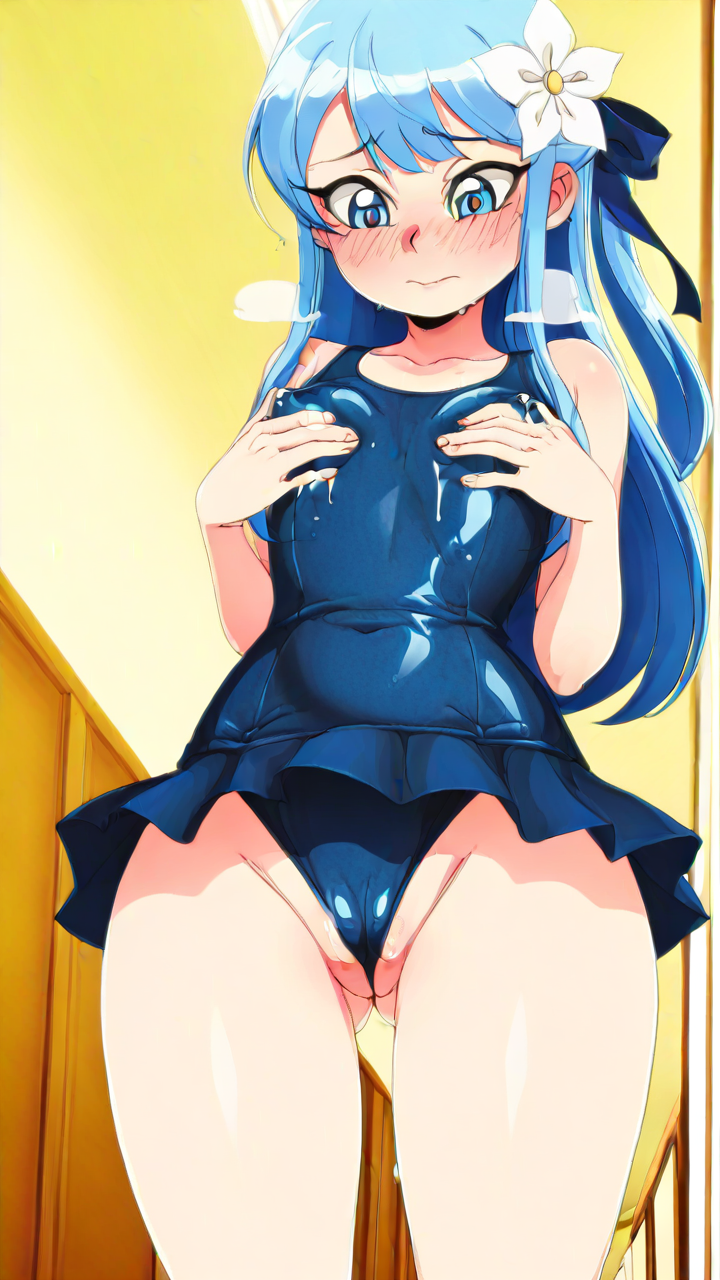 【エロ画像】AI_母乳_青髪ハーフアップの白花スク水美少女美少女,おっぱい,おしり,M字開脚,食い込み,乳首,パンツ,くぱぁ,母乳,ミルク,,青髪のハーフアップ,青い瞳、丸くてキラキラした目,貧乳・長身,スクール水着、白い花飾り、青いヘアリ...
